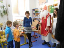 Pátý prosincový den ve škole na Komenského provázelo napětí, shon a chaos. Děti totiž dokončovaly nácvik vystoupení na vánoční jarmark, který se měl odehrát následující den a některé třídy měly divadelní představení. Přes všechny přesuny tříd a obavy, aby se všechno podařilo, však jasně vyčnívalo očekávání Mikuláše a jeho hlučné družiny. I letos museli hříšníci odpykávat své
