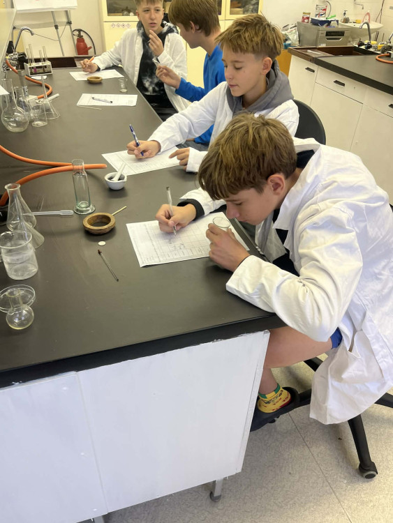 V rámci výuky chemie a také jako součást environmentálního vzdělávání mají žáci 8. a 9. ročníků možnost pravidelně pracovat v odborné chemické laboratoři. Každá skupina zde tráví jednu vyučovací hodinu jednou za 14 dní, během níž propojuje teorii s praktickými experimenty a poznává souvislosti mezi chemií, životním prostředím a reálným světem kolem nás.