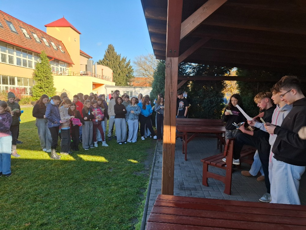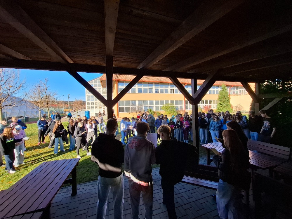 Vyvrcholením celé akce byla velká přestávka. Na školním dvoře se společně zpívala píseň Náměšť