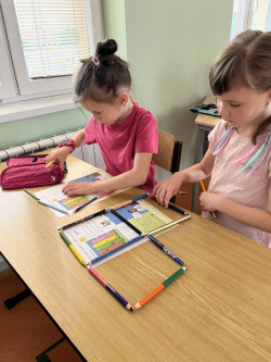 Se šikovnými prvňáčky jsme se letos vydali objevovat krásy matematiky. Mimo jiného jsme si zkusili udělat stavby z kostek, správně je zapsat a potom společně diskutovat o možných řešeních při přesunu jedné či více kostek. Dále jsme řešili různé logické hry a rozvíjeli svoji prostorovou představivost. V některých hodinách jsme se inspirovali i metodami Hejného matematiky a učili se pracovat s číslem jako vyjádřením pořadí. Velmi nás všechny bavilo hrát si na obchod a řešit, jakými variantami mincí můžeme platit. Po hodinách matematiky+ už víme, že číslo nevyjadřuje pouze počet, ale také pořadí, že pomocí čísel můžeme zapsat i proběhlé změny a hlavně, že máme úlohy, které mají více řešení.