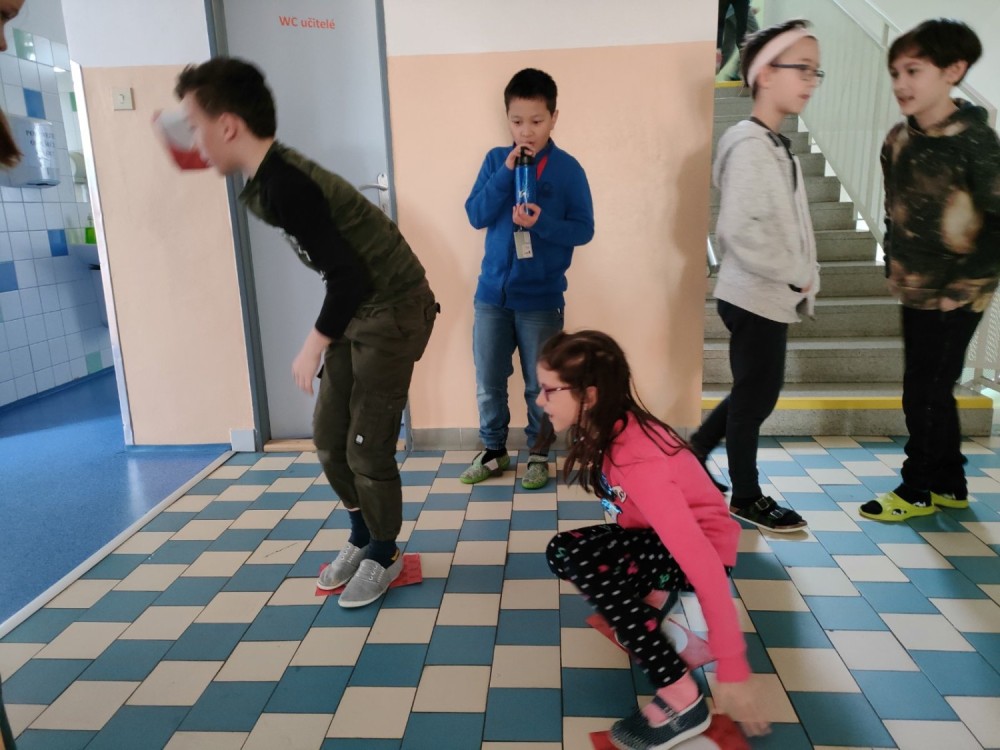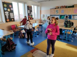 Úterní školní den jsme si zpříjemnili masopustním veselím. Děti během přestávek hledaly a plnily úkoly po škole. Na chodbách bylo rušno a veselo.
