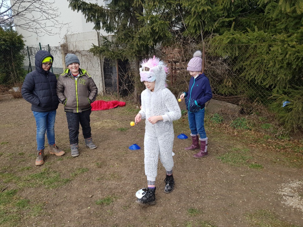 Třídy 5.A a 5.B se zapojily do masopustních oslav a připravily stanoviště na zahradě pro mladší spolužáky. Úkoly byly zajímavé a pro děti zábavné. Na zahradě se sešlo 12 různých stanovišť, kde si děti mohly vyzkoušet všelijaké úkoly. Páťáci si vše zvládli nachystat a zorganizovat. Nezapomněli ani na sladkou odměnu, která měla velký úspěch. Tímto děkujeme všem zapojeným vyučujícím, dětem i jejich rodičům za příjemné zpestření výuky.