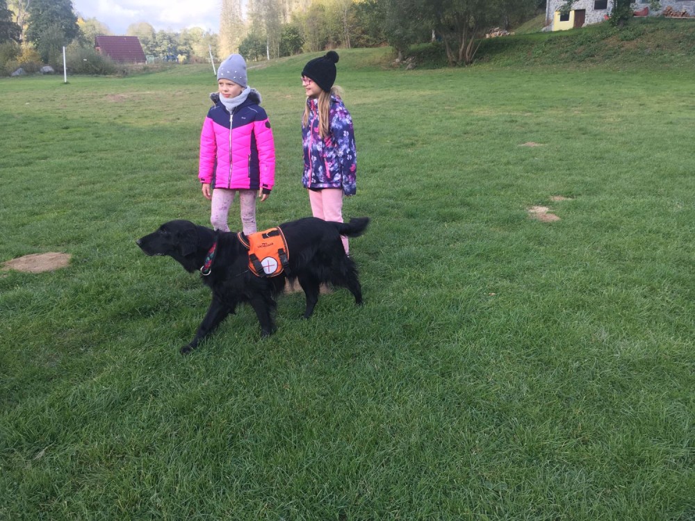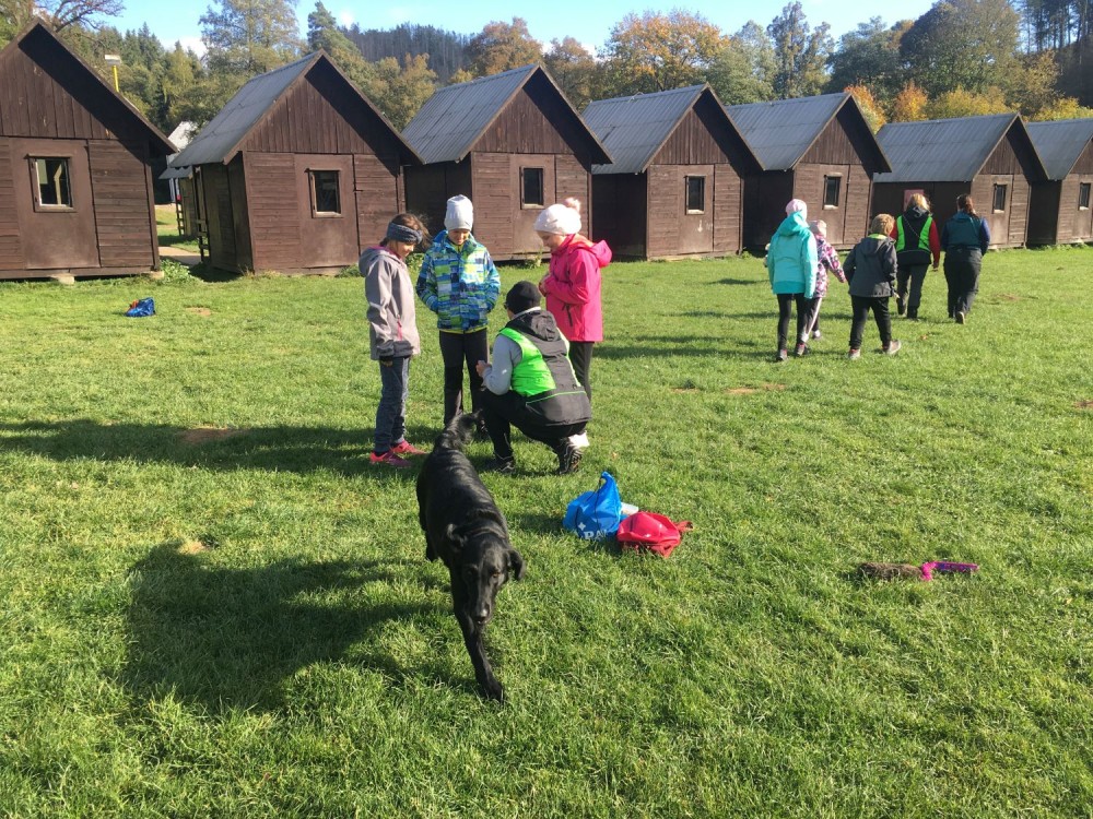 Odpoledne už nás přivítalo i sluníčko, a tak jsme vyrazili po tlupách ven, kde na nás čekal program se záchranářskými psy. Tito čtyřnozí pomocníčci byli schopní všechny dobrovolníky, poschovávané různě po středisku, bez problémů najít :)