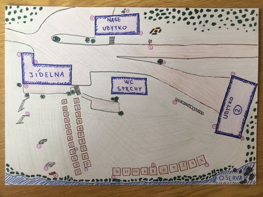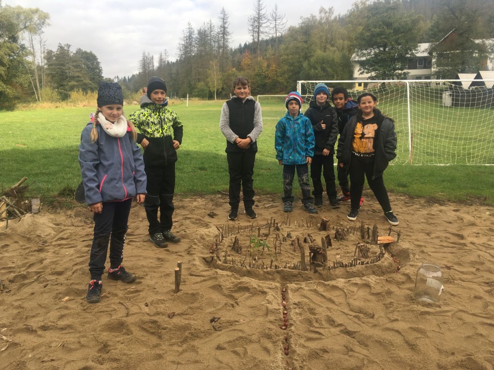 V průběhu odpoledne jsme se vydali poznávat celý areál střediska cestou labyrintem, jehož jednotlivé stanoviště nás vedly do nejrůznějších koutů Nesměře.