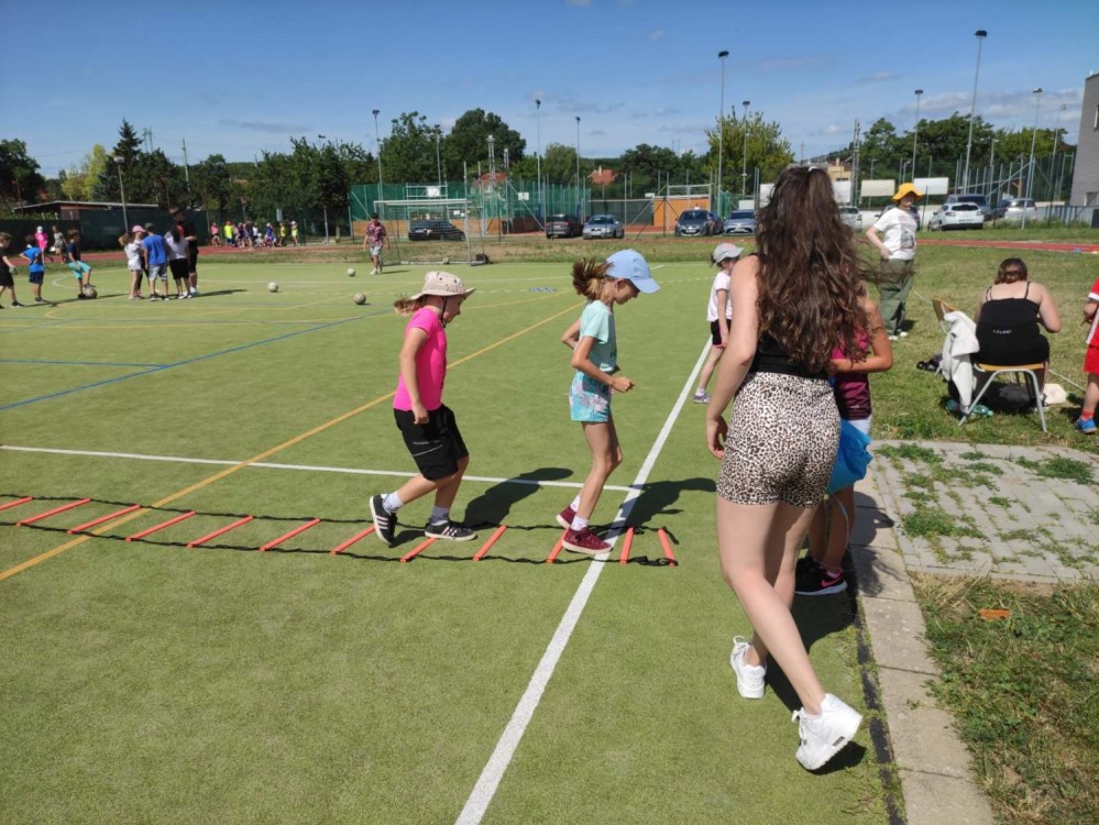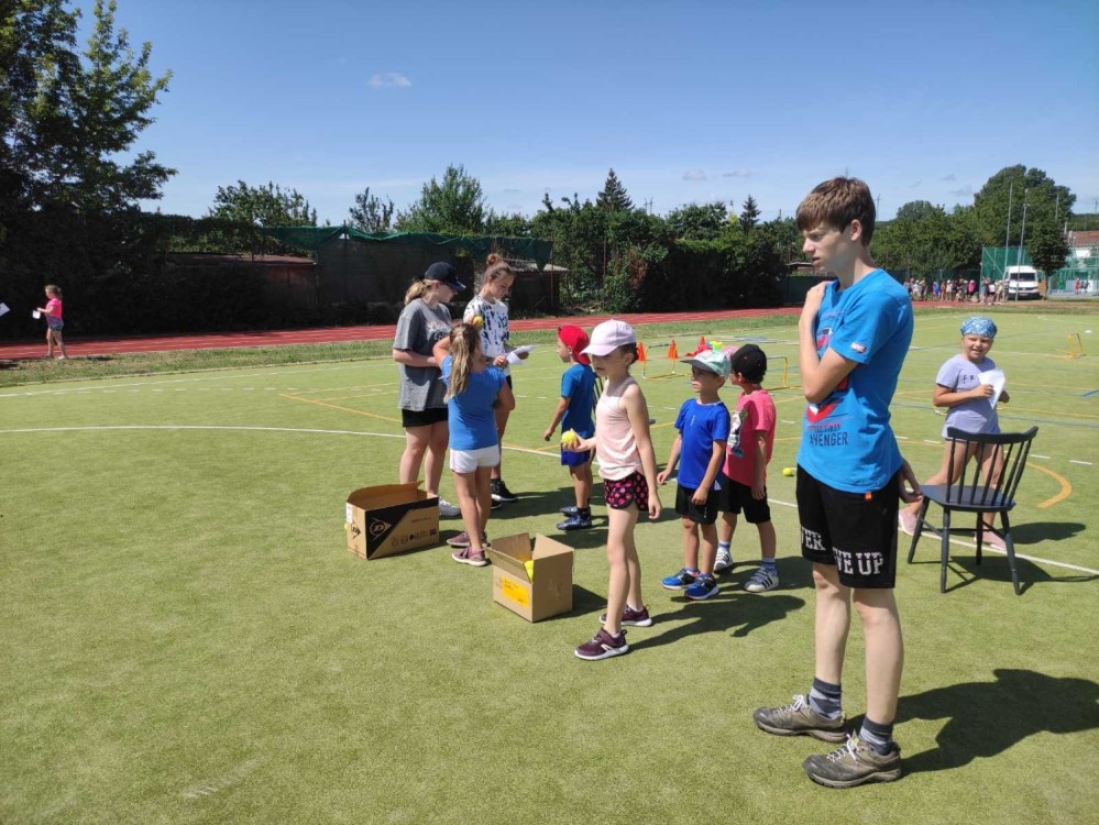 Na závěr školního roku jsme požádali naše nejstarší spolužáky, zda by nám nepomohli s organizací sportovního dne pro 1. stupeň. Kývli - to asi ještě netušili, o jaký dav dětí se budou muset postarat :-). O to větší DÍKY jim teď posíláme společně s fotkami. Moc si ceníme jejich zapálení a výdrže během celé akce v ukázkovém letním horku.