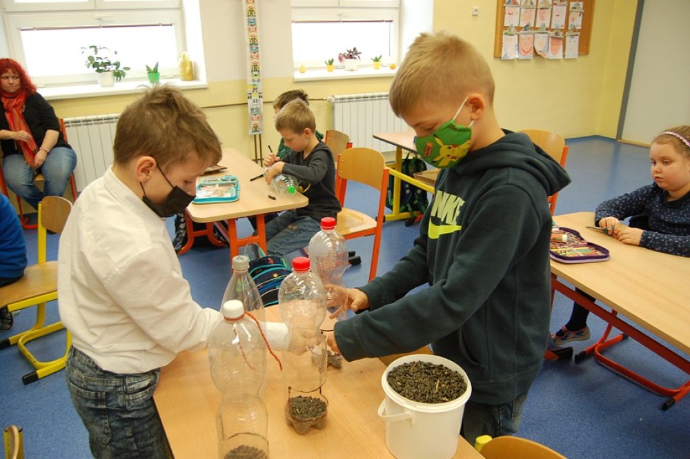 Žáci školního parlamentu se na na návrh paní ředitelky rozhodli zapojit do projektu Hrdá škola (https://schoolsunited.cz/projekt-hrda-skola). Z nabídky možných aktivit vybrali Vánoční dobrý skutek. Cílem je se jako třída domluvit a realizovat libovolný dobrý skutek. V I.B jsme se v rámci tohoto projektu pustili do výroby ptačích krmítek. Práce nám šla výborně od ruky a hotová krmítka a kouličky s krmením jsme hned pověsili na školní zahradě.