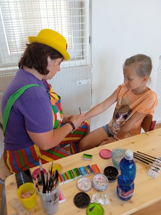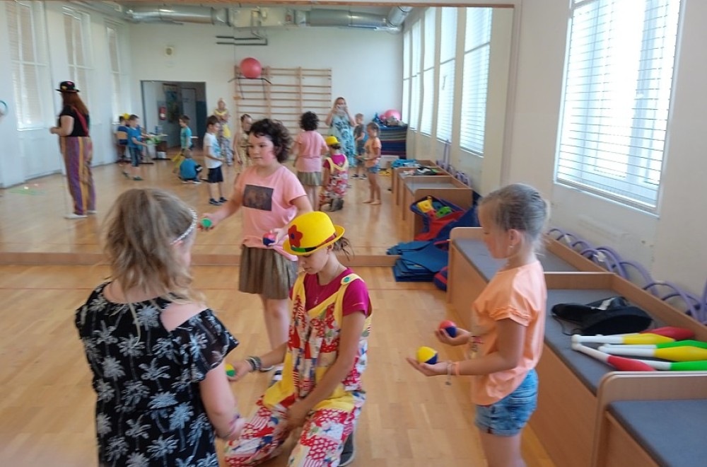Při výukovém programu Dovádění s klauny SVČ Ivančice jsme se moc bavili a vyzkoušeli si třeba to, že žonglování není jednoduché. Rozdělili jsme se na skupiny a vystřídali jsme se na několika stanovištích. Také jsme si mohli nechat namalovat na ruku nějaký hezký obrázek.