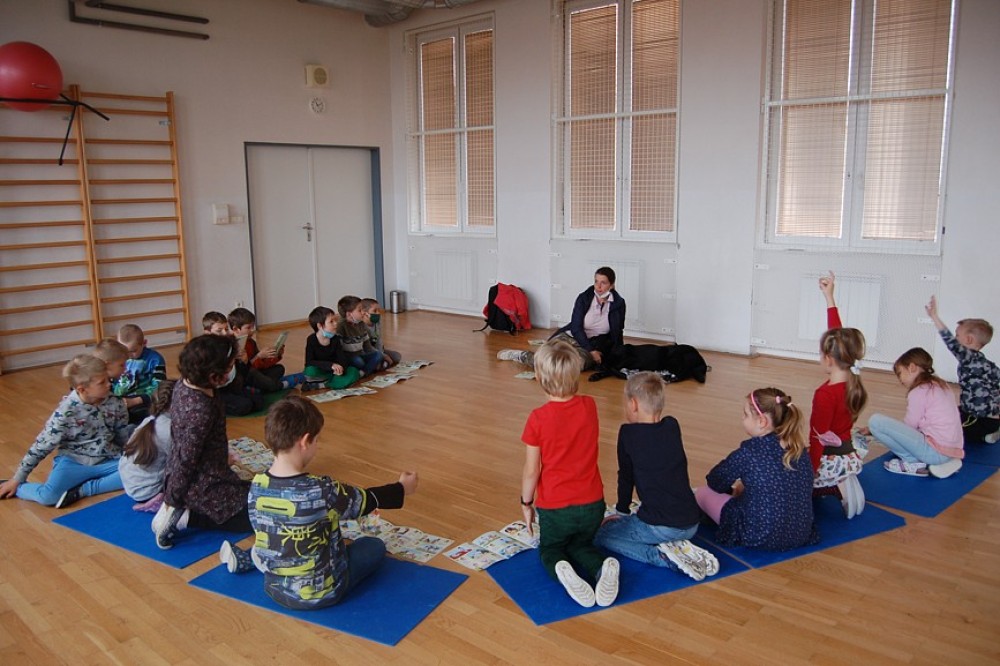 Ve výukovém programu jsme se seznámili s tím, jaké nebezpečné situace mohou nastat při setkání se psem nebo i doma s vlastním psem. A protože jsme byli hodní a pozorně jsme poslouchali, tak jsme si na závěr mohli pejska i pohladit.