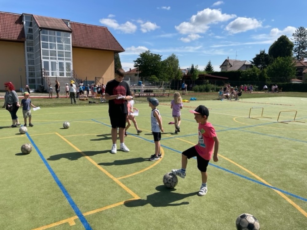 V posledním týdnu před prázdninami si užíváme spousty aktivit a jednou z tradičních a zároveň oblíbených je sportovní den. Žáci 9. tříd i letos nachystali pro děti z 1. stupně spoustu stanovišť, kde si kažý prověřil svou osobní zdatnost, rychlost, přesnost i obratnost. Děkujeme.