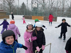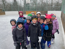 Lednové mrazivé počasí jsme s prvňáčky využili a navštívili místní ledovou plochu. Někteří stáli na bruslích zpočátku nejistě, ale za hodinu na ledě už všichni jezdili jako draci. Zkušenější děti si své dovednosti zdokonalovaly - učily se zatáčet, překládat a další cviky na udržení rovnováhy a jistoty na ledu. Spousta rodičů přišla pomoci s nazouváním a zavazováním bruslí a někteří se i aktivně zapojili do výuky, díky čemuž si to všichni užili a spoustu se toho naučili. Děkujeme.