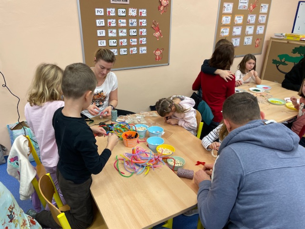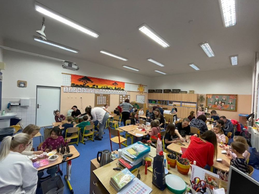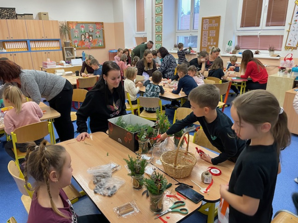 Na akci přišla spousta rodičů i prarodičů a celé dopoledne tak proběhlo ve znamení vánočního tvoření. Spousta maminek, ale i babiček si perfektně nachystaly stanoviště, kde spolu s ostatními pomáhaly dětem s výrobou drátěných korálkových ozdobiček, stromečků a andílků ze šišek, vánočních přání, svíček, zvonečků nebo vánočních skleniček.