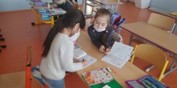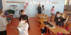Dnes nás hodina čtení hooodně bavila. Dostali jsme tabulku, ve které bylo 8 vět s popisem postav. Po přečtení jsme je hledali - paní učitelka rozmístila karty po třídě. U každé karty bylo písmenko, které jsme zapsali ke správné větě. Tajenku jsme vyluštili všichni, za odměnu jsme zhlédli pohádku, která nám v tajence vyšla :-).