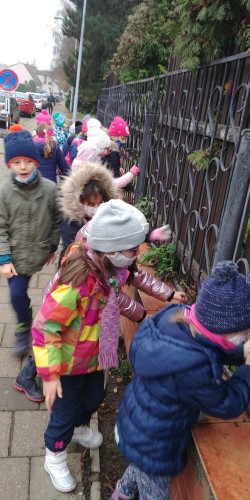 Od našeho návratu do školy chodíme místo tělesné výchovy na pravidelnou vycházku. Pozorujeme na ní nejen změny v přírodě související s příchozí zimou, ale i naše oblíbené králíky. V pátek jsme měli štěstí - byli tam :-). Po cestě jsme ale také určovali stromy a ptáky, o kterých jsme se učili v prvouce nebo v českém jazyce: poznáme už smrk, borovici, dub či břízu, viděli jsme také havrany, kosa a sýkoru.
