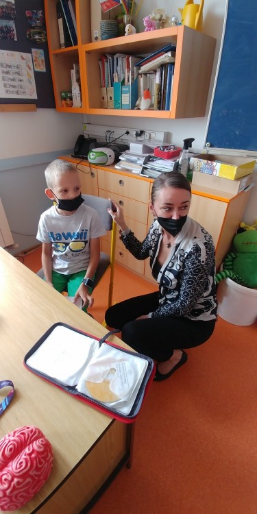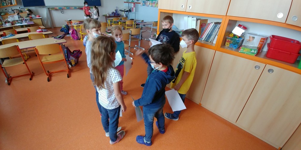 S paní psycholožkou jsme tentokrát hráli krásné hry na utužení vzájemných vztahů. Užili jsme si při tom spoustu legrace - když jsme měli vytvořit sochu pomocí emoce - např. strach, radost, vztek,... Jak se nám dařilo tyto pocity vyjádřit můžete vidět na fotografiích. Myslím, ž i přes roušky se nám to velice pěkně podařilo :-)!