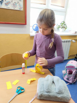Prvňáci rozpohybovali tři krále z proužků papíru. Zatančili si i na písničku.