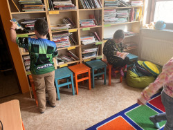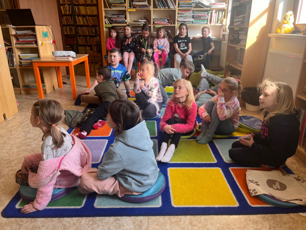 V úterý jsme navštívili modřickou knihovnu, abychom si povídali, jak je to vlastně s pohádkami. Jednu nám paní knihovnice také pustila - bylo v ní všechno popletené. Také nám jednu pěknou přečetla - recyklovanou. Hledali jsme znaky pohádek - ty jsme u obou našli. A v obou pohádkách také všechno dobře dopadlo - a tak je to v pořádku.