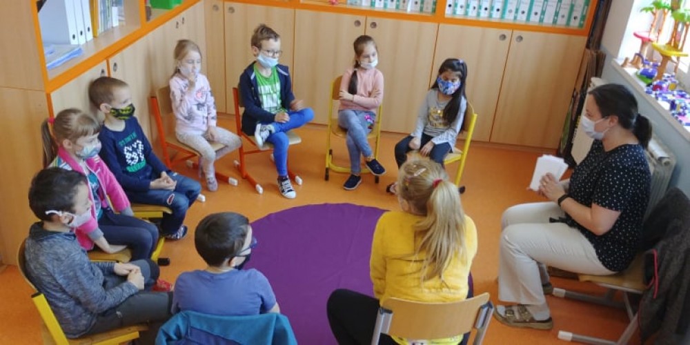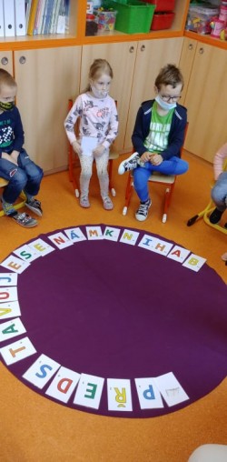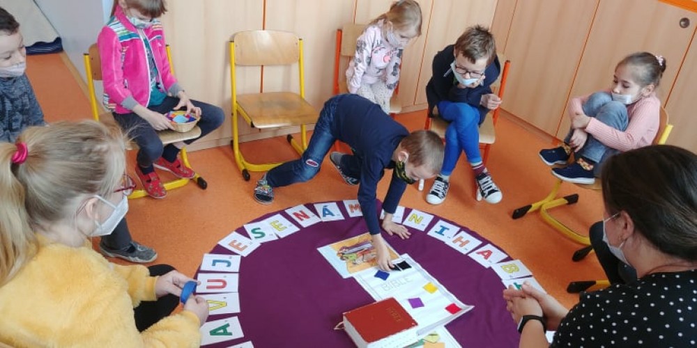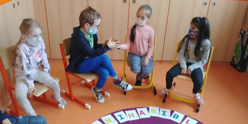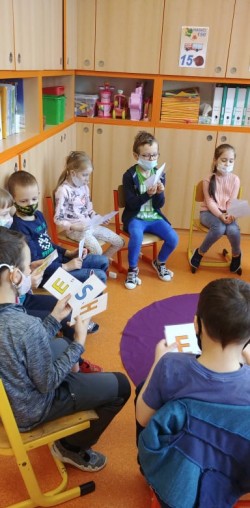 Dnes nás opět navštívila paní učitelka Klangová. Přinesla nám na ukázku několik Biblí a krásně a poutavě nám o knihách vyprávěla. Procvičili jsme si při tom i znalost písmen, čísel, ale i jiných gramatických jevů. Také jsme vyslechli a společně povyprávěli jeden příběh se šťastným koncem. Na závěr jsme si vyrobili malé leporelo. Program se nám moc líbil, děkujeme!