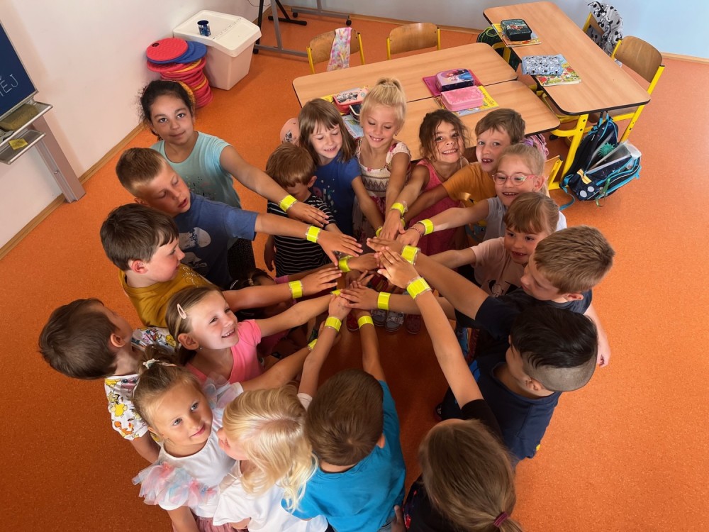 V týdnu od 18. do 22. září jsme se zúčastnili akce Pěšky do školy. Po příchodu ke škole jsme ještě mohli dělat různé protahovací aktivity. Za odměnu každý získal reflexní pásku, aby jej bylo pěkně vidět.
