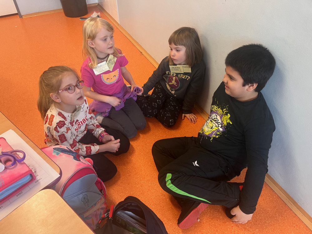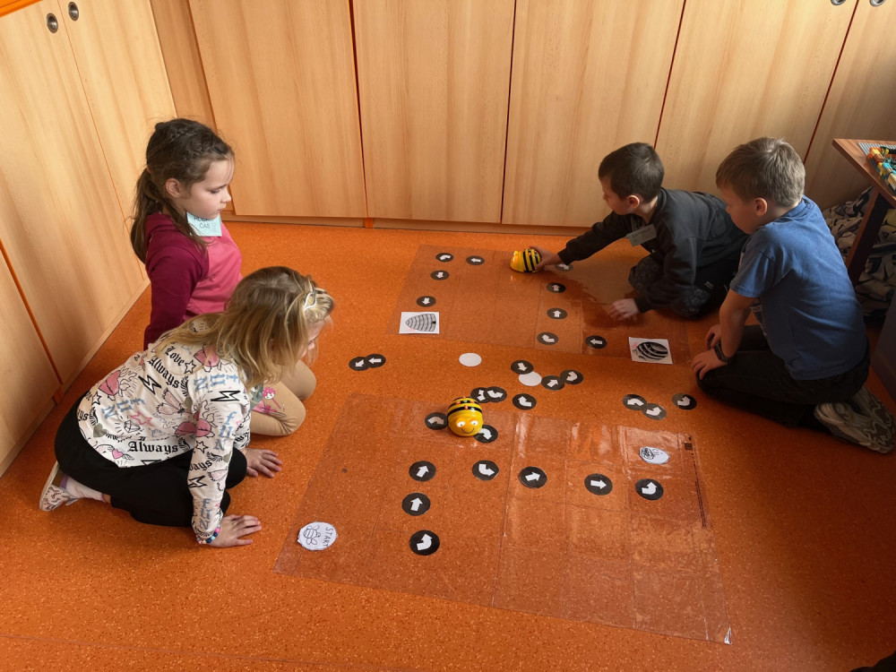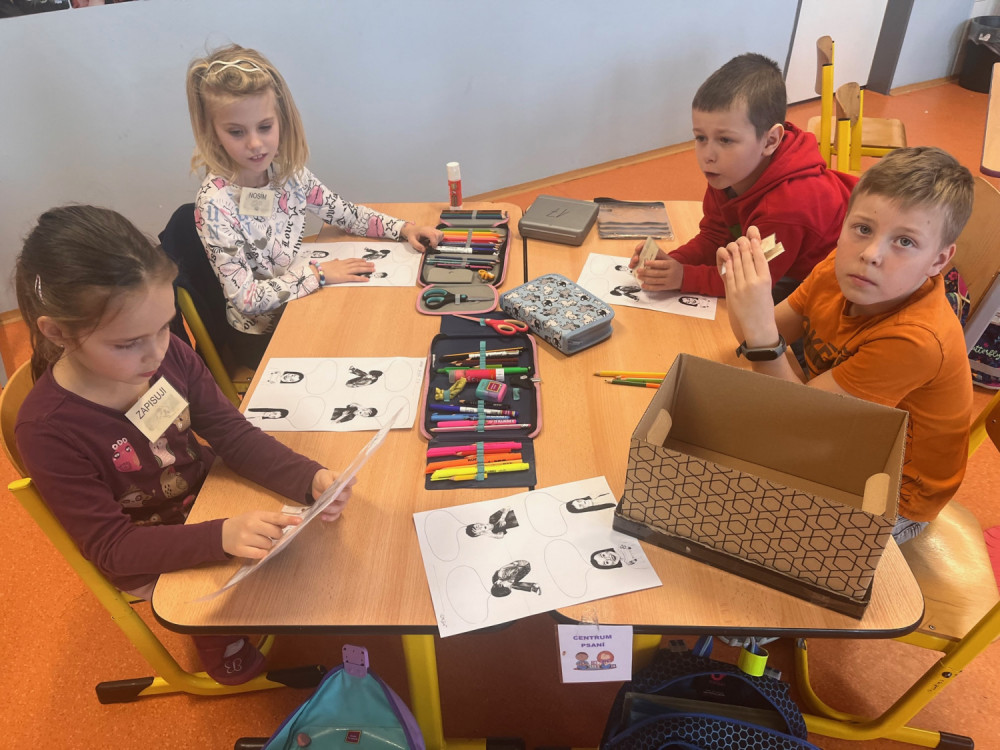 Únorová centra aktivit patří emocím. Co cítíme, jak se vyrovnáváme s různými pocity. V centru pokusů a objevů se učíme řešit konflikt se spolužákem pomocí tzv. semaforu. Situace natáčíme na video a se třídou společně rozebíráme. V ateliéru si vyrábíme emoji, v psaní se pokoušíme o komiks - což vůbec není lehké. Čtení patří radosti - plníme svoji sklenici, no a matematika je radost největší - tam programujeme interaktivního robota - Bee-Bota.