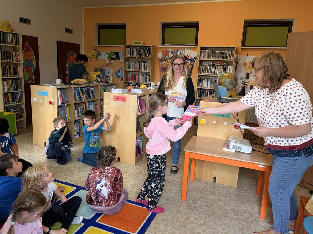Dnes jsme se naposledy v tomto školním roce vydali na besedu do knihovny. Byl to pro nás slavnostní okamžik: museli jsme každý přečíst kousek knížky, abychom získali slavnostní glejt. Tímto jsme oficiálně pasováni na čtenáře! Každý ještě obdržel knihu jako dárek, tu si může přes prázdniny s chutí přečíst!