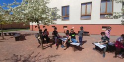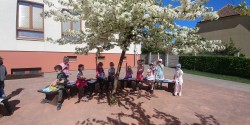 Konečně nám venku svítí sluníčko, a tak jsme mohli jít na hodinu prvouky ven. Zrovna jsme probírali, z jakých částí se rostliny a stromy skládají - no a venku to byla hračka! Přímo před námi jsme totiž měli názornou ukázku: kořen jsme sice neviděli, ale hned jsme pochopili, k čemu stromu slouží. Z kmene vyrůstá krásná koruna z větví, která je nyní obsypaná květy. Dnešní učivo si určitě lépe zapamatujeme možná i díky názorné ukázce.