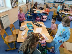 V rámci učiva prvouky, seznamování se a podpory spolupráce mezi dětmi jsme zvolili práci v centrech aktivit. První z nich je na téma pohádky O veliké řepě. Děti se rozdělily do skupinek podle vylosovaných čísel. Během dvou týdnů navštíví centra čtení a psaní, matematiky, atelier, pokusy a objevy, relaxace. V rámci každého centra splní zadaný úkol, jejich práci odprezentují a ohodnotí. Nechybí také doporučení a rada pro další skupinky, které se na dané úkoly teprve chystají.