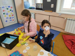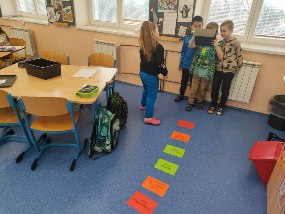 V rámci center aktivit na téma Emoce děti měly možnost povídat si a poznávat se navzájem. Každé centrum zahajovaly debatou o tom, jaké situace jim způsobují jednotlivé emoce, co jim pomáhá apod. V rámci centra pokusů a objevů jsme se naučili pracovat se semaforem na řešení konfliktních situací. Děti mohly natočit různé konfliktní situace na videa, která jsme následně rozebírali. Další zajímavostí bylo programování Bee-Botů, které všechny moc bavilo. Každý si vyrobil své smajlíky na hodnocení pocitů při práci ve třídě a Sklenici radosti k uložení do školního šanonu.