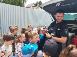 V rámci dopravní výchovy a osvojování pravidel bezpečného chování jsme si doplnili znalosti při setkání s příslušníkem Městské policie Modřice. Zopakovali jsme si důležitá telefonní čísla a to, jak bychom měli vést telefonický hovor, když potřebujeme pomoci. Prohlédli jsme si základní výbavu policisty, kterou použije v případě zásahu, viděli jsme například vysílačku nebo resuscitátor sloužící k záchraně člověka. Také už víme, za jakých okolností volat městskou policii.