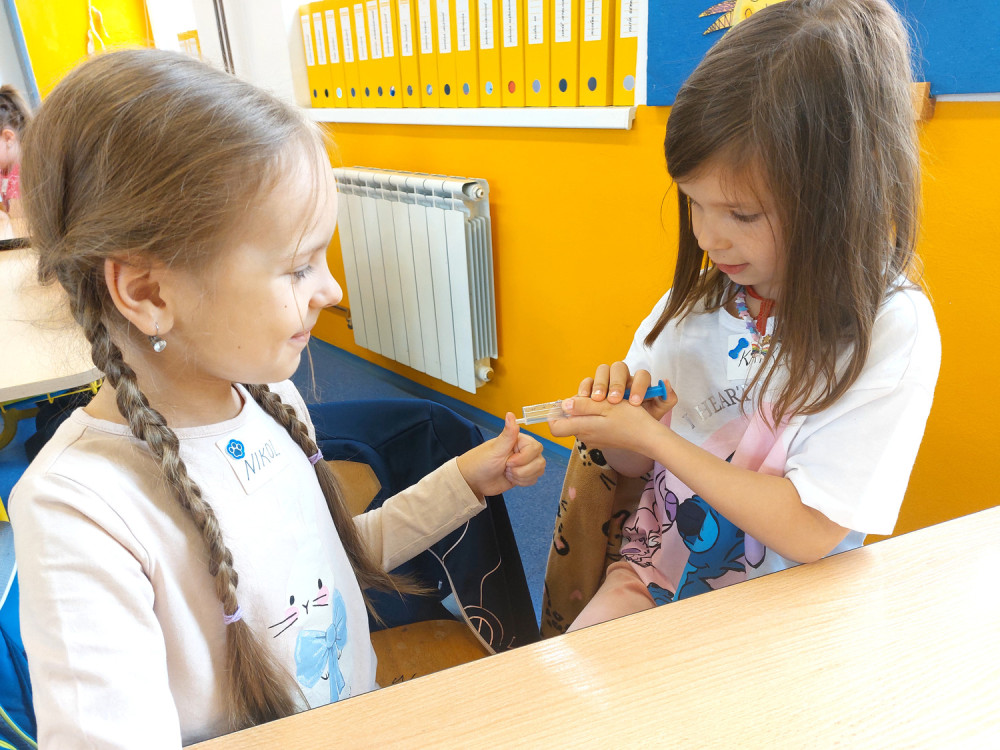 A teď jsme si mohli na praktických cvičeních ověřit její další vlastnosti. Pracovali jsme se skupenstvím, vzlínavostí, hustotou a povrchovým napětím vody. Některá zjištění nás docela překvapila, a tak se těšíme na další setkání, kdy budeme „objevovat svět“.