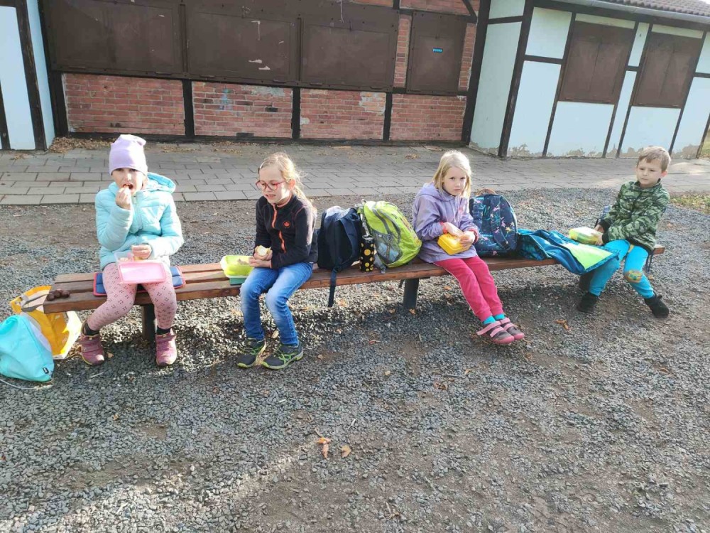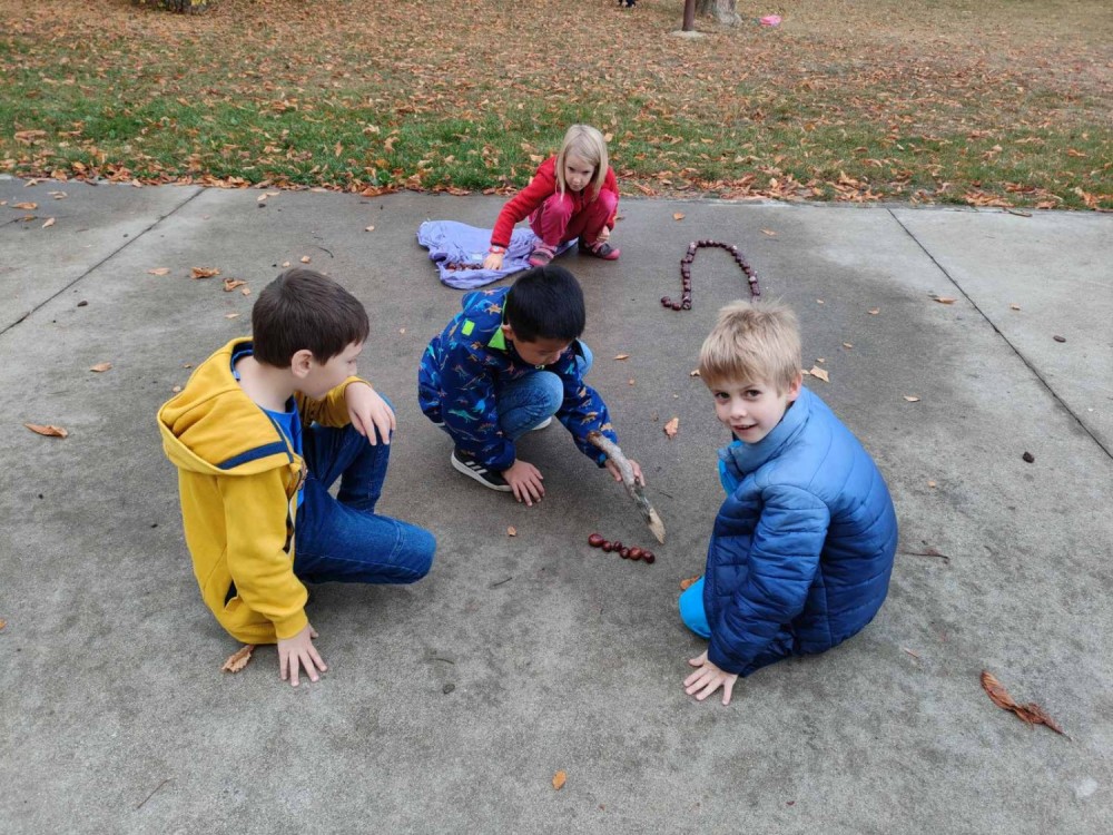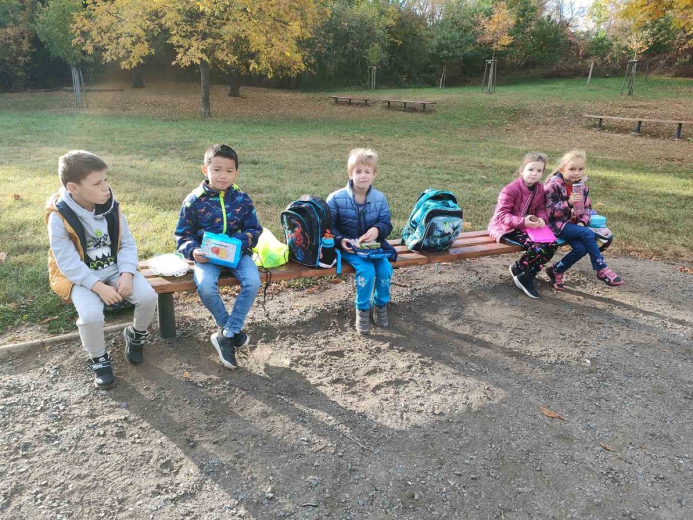Využili jsme pěkné počasí před podzimními prázdninami a vyrazili na pozorování změn v přírodě. Děti měly za úkol sledovat trasu výletu a sbírat obrázky do venkovního Binga. V areálu Pod kaštany jsme se zabavili výrobou přírodních mandal z podzimních plodů a listů. Nakonec jsme šli nahlédnout na koně a zvířata na poli, jak se jim daří a už jsme spěchali zpátky na oběd.
