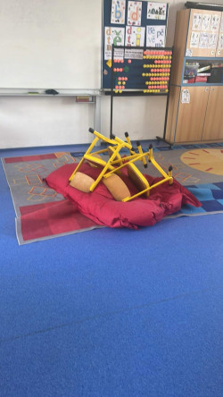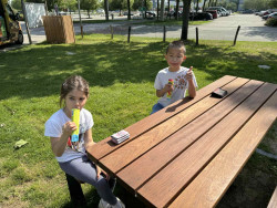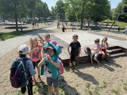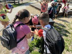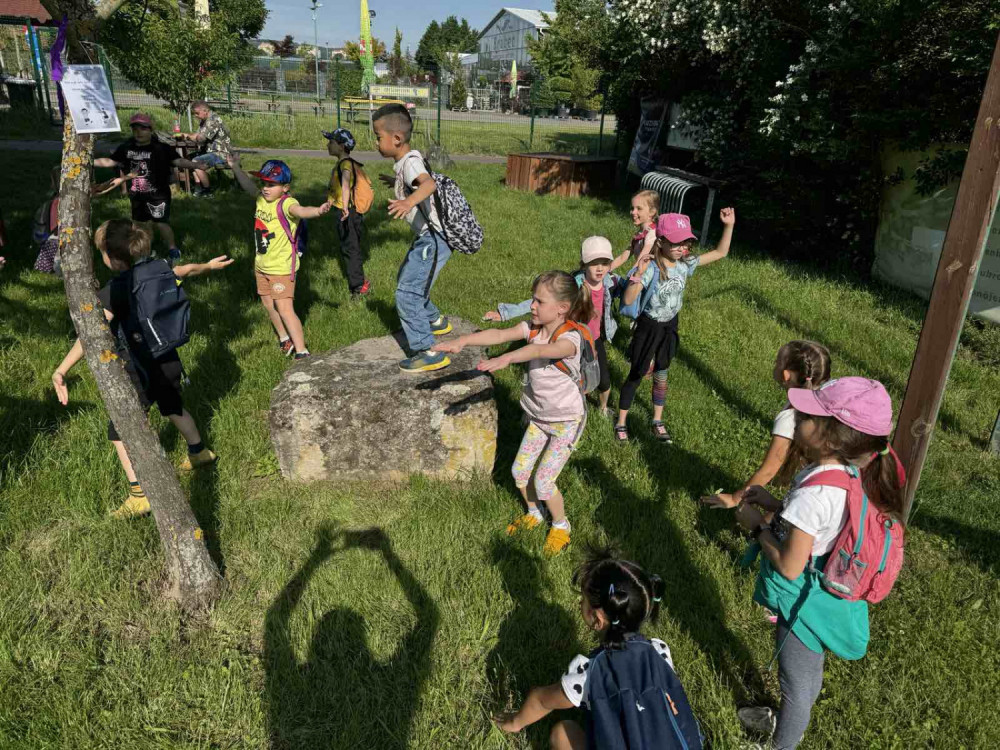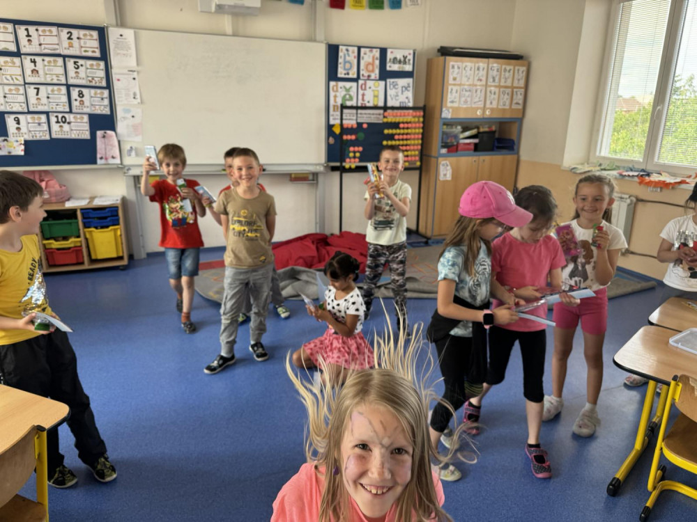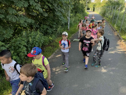 Na závěr center aktivit jsme se vypravili na stezku skřítků za pokladem. Ve třídě jsme získali nápovědu - hledej fialovou stopu a po té jsme se přes 11 skřítkových úkolů dostali až k pokladu. Ale to by nebyli skřítci, kdyby se vše podařilo, jak si myslíme. Na konci cesty nás čekalo nemilé překvapení - poklad schovali ve třídě! Naštěstí nás navedli téměř k hřišti Olympia, kde jsme na naše malé zklamání rychle zapomněli :-). O to lépe se nám šlapalo zpět, když jsme se mohli těšit na překvapení.