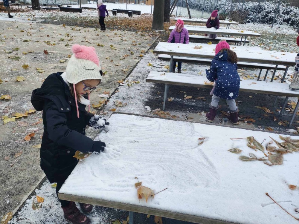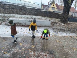 30. 11. 2023 Využili jsme prvního sněhu a mrazu na hrátky venku. Honičky ve sněhu, klouzání a tanec na ledě nás moc bavily. 1 / 12 / 2023 IB