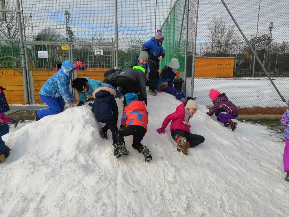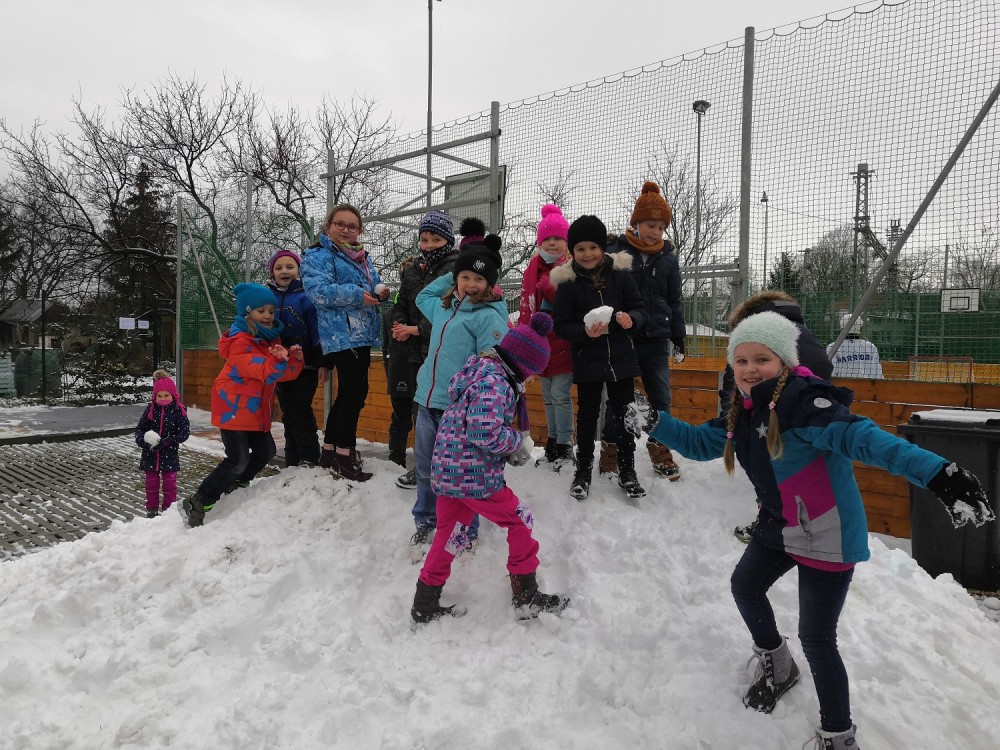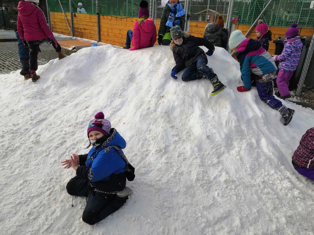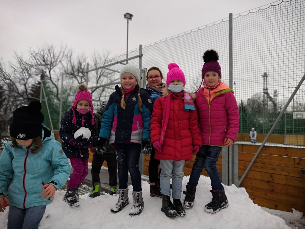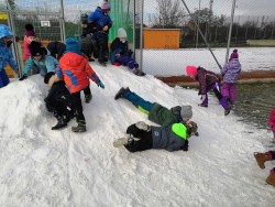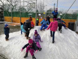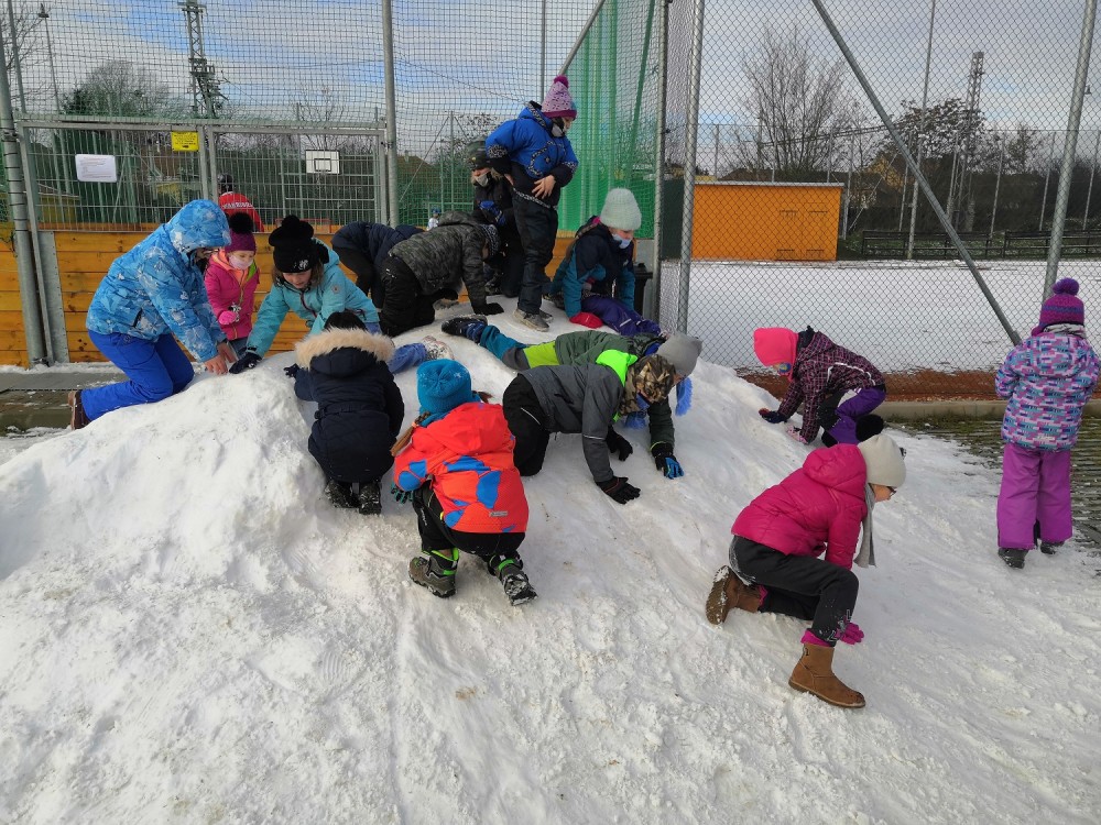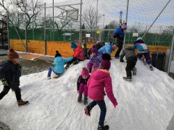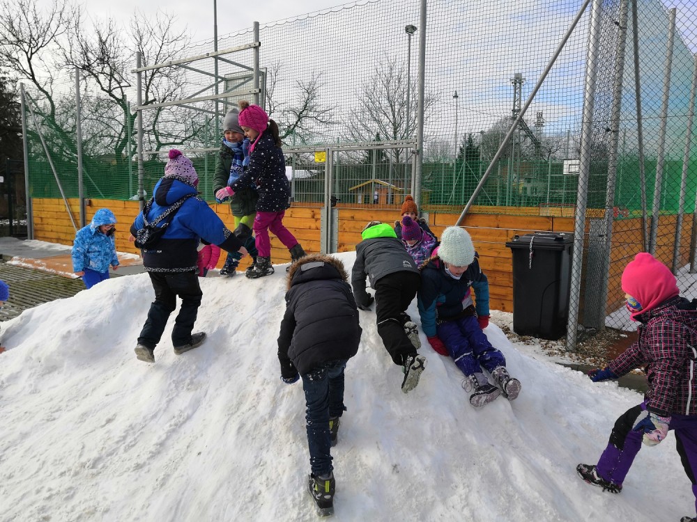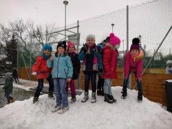 V rámci pátečního tělocviku jsme se vydali na jediný dostupný sníh v Modřicích. Na "modřické sjezdovce" jsme strávili bezva hodinu tělesné výchovy. Jsme rádi, že pan správce vydržel naši obrovskou radost doprovázenou ječením, křičením, pištěním, protože my jsme byli moc spokojení :-).