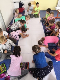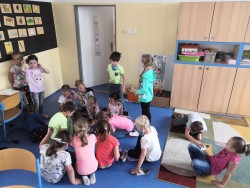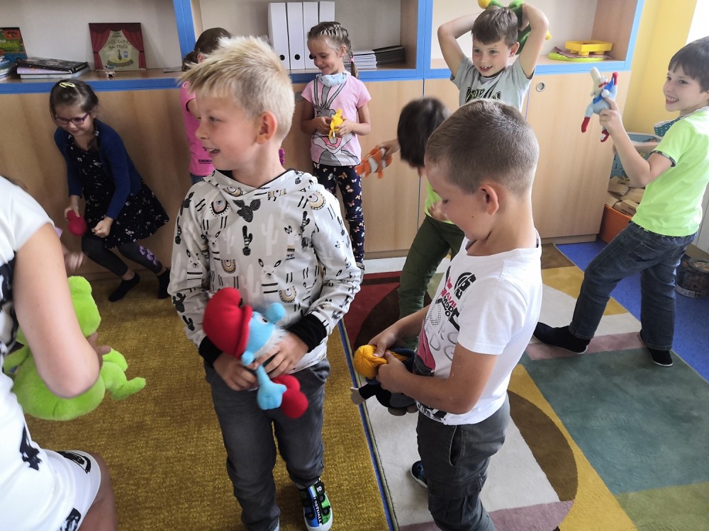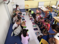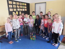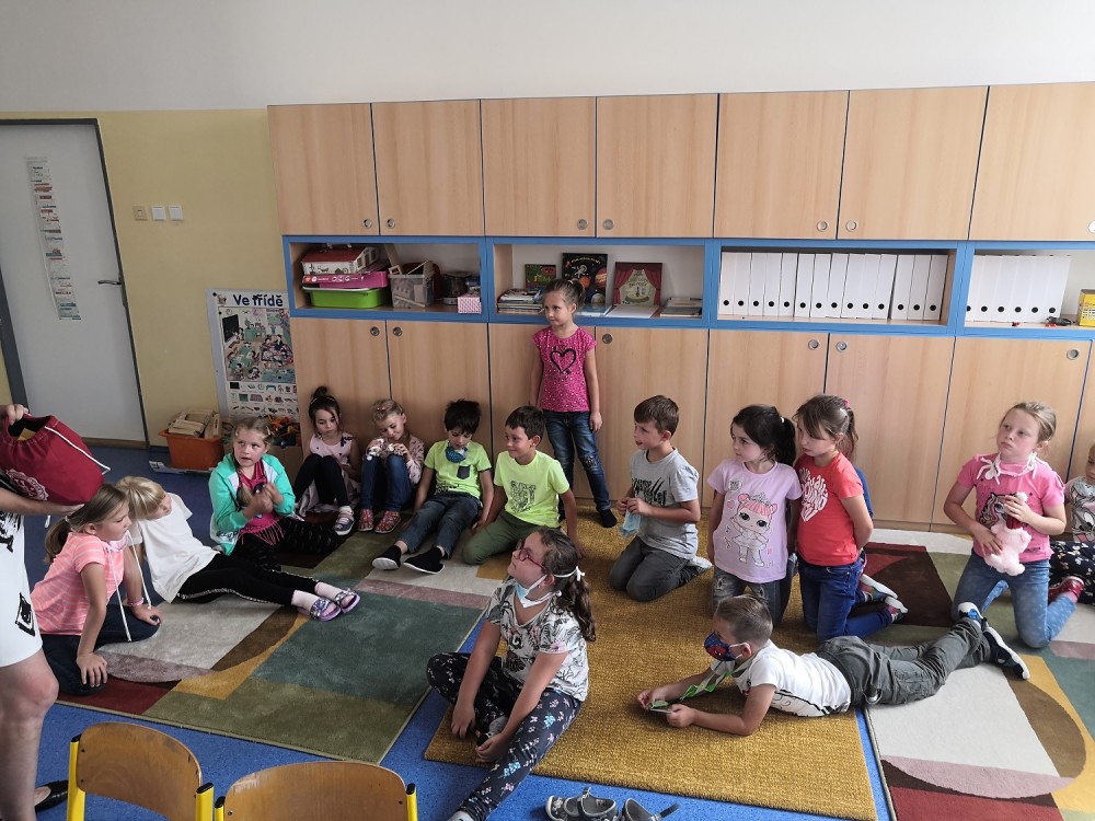 Druhý týden v září se s námi do třídy přišla seznámit paní psycholožka Mgr. Jeanette Vrtková. Připravila si pro děti zajímavý a zábavný adaptační program. Děti se blíže seznámily se svými spolužáky, připomněly si nová jména. Poznaly mouchu radost, smutek, naštvání a na velký papír si pak každý namaloval, co by ve škole chtěl mít. Největší výzvou se na závěr stala stavba hradu z kostek. Dětí moc a kostek málo, ale i tam si nakonec poradily! :-)