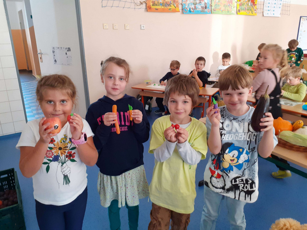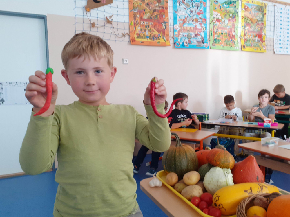 20. 9. 2024 Děkujeme rodičům za praktické pomůcky do vyučování. Díky nim jsme mohli poznávat podzimní druhy zeleniny a ovoce, modelovat a porovnávat s originálem, jak se nám naše výtvory povedly. 22 / 9 / 2024 HP