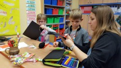 K pondělním vánočním dílnám s rodiči ještě připojuji krásné fotografie pořízené maminkou - paní Verčimákovou. Nejenže peče výborné perníčky, ale ještě k tomu se jí podařilo nafotit krásné momenkty - posuďte sami, jak děti se zaujetím pracují!