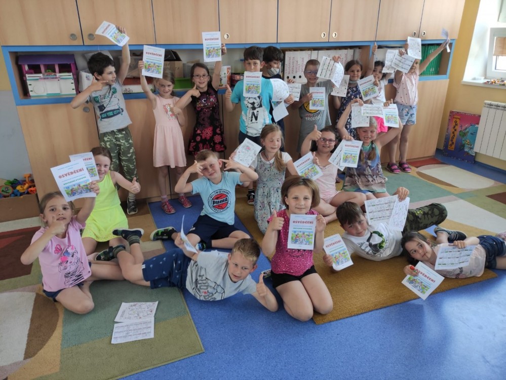 Ve spolupráci s Městskou knihovnou Modřice jsme se letos výjimečně ve třídě pasovali na čtenáře. Děti jsou šikovné a novou knížku na prázdniny si za jejich snahu a píli ve školním roce určitě zasloužily. Těší se, že ji o prázdninách celou přečtou a stanou se z nich zkušení čtenáři připraveni na druhou třídu. Zároveň s knížkou si přihlášené děti odnesly i průkazku do knihovny. Nové knížky a zkušenosti mohou v létě objevovat i tam.