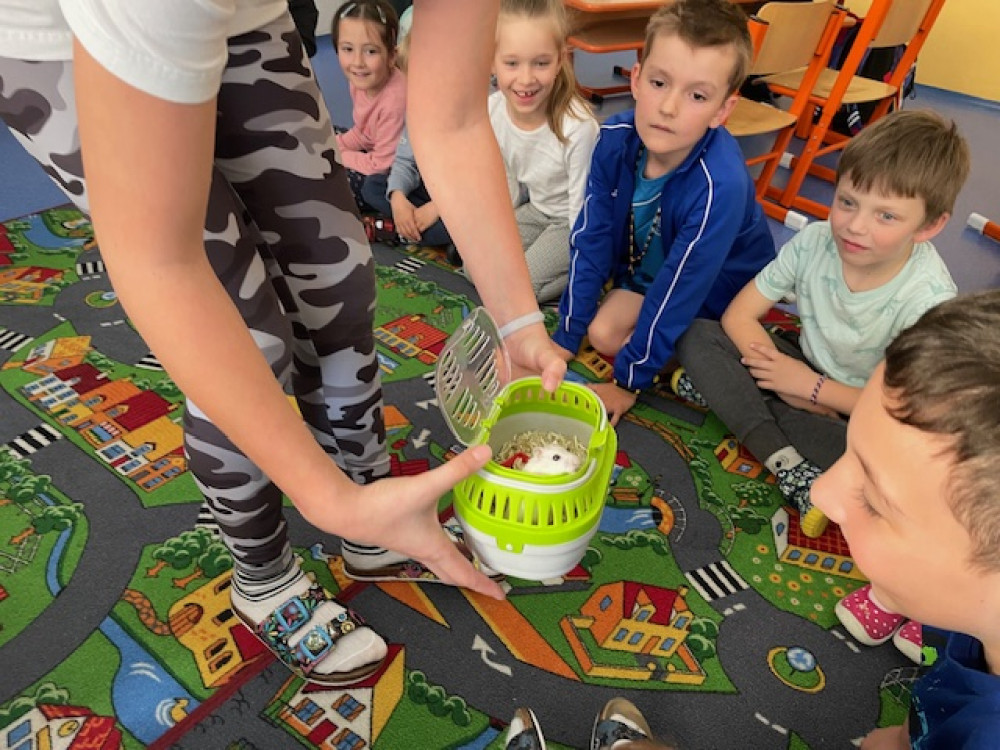 12. 4. 2024 V pátek 12. 4. nás navštívily děti z 5. A a seznámily nás se zajímavými informacemi ze života křečků. Největší úspěch měl ale živý křeček Ňufík, kterého si děti mohly prohlédnout. 17 / 4 / 2024 EN