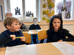 3. 11. 2025 Na tento den jsme se dlouho těšili, vyzdobili jsme třídu, vyráběli dekorace, vyprávěli si o Halloweenu v anglicky mluvících zemích i tradičním svátku zesnulých. Na stezce v okolí školy jsme plnili halloweenské úkoly. 17 / 11 / 2025 JSe