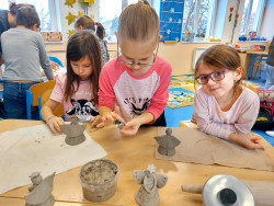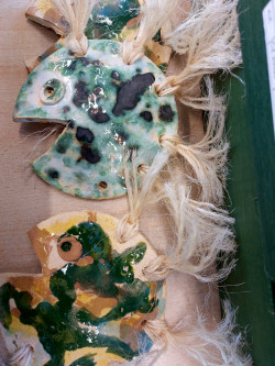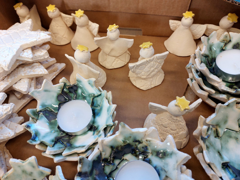 Práce s keramickou hlínou patří mezi naše oblíbené činnosti. Stejně jako v loňském roce jsme vyráběli vánoční andílky, rybičky, zvonečky a jiné dekorační předměty určené k prodeji na vánočním jarmarku nebo jako dárky pro obyvatele Pasivního bytového domu pro seniory v Modřicích, kam se chystáme, abychom vystoupili se svým vánočním programem.