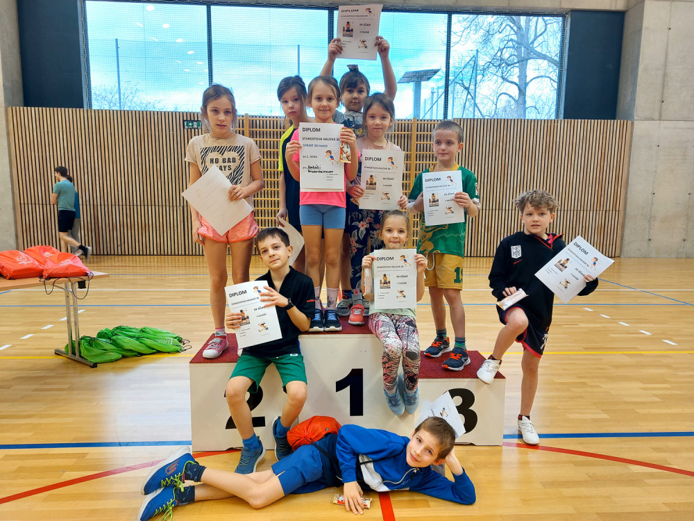 V pátek 13. února nás v 1. ročníku soutěže v halových disciplínách reprezentovalo 10 žáků, soutěžilo se ve třech disciplínách: skok do dálky z místa, hod míčem a běh na 30 metrů.