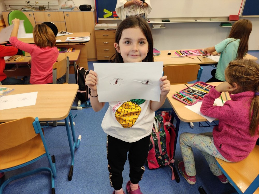 20. 10. 2021 Ve třídě II.C nás navštívila nová paní psycholožka a připravila si zajímavý program. Jeden z úkolů, který jsme dostali bylo zadívat se navzájem do očí a potom je nakreslit. Všechny nás to moc bavilo a oči kamaráda byly povedené. 2 / 11 / 2021 IB