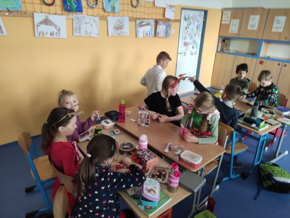 21. 12. 2021 Dnes jsme si moc užili vánoční besídku s tombolou. Po protažení v tělocviku jsme si nachystali občerstvení a losovali dárečky. Zvládli jsme si zahrát stolní hry nebo karty. Kdo chtěl odpočívat, mohl u vánoční ovečky Shaun. 21 / 12 / 2021 IB