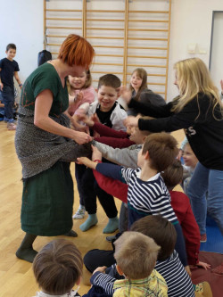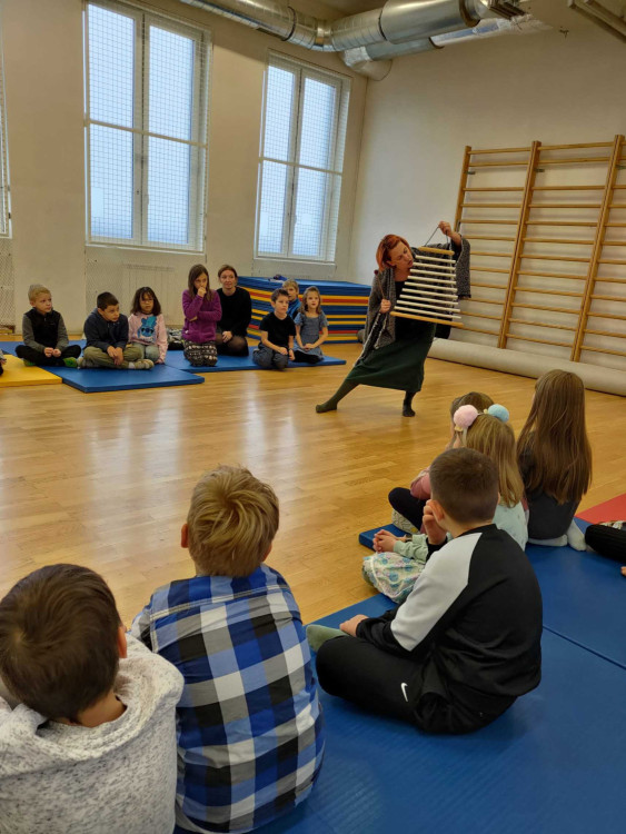 Navštívilo nás divadlo DIP se třemi příběhy. Paní principálka dětem vyprávěla o vodní víle a o tom, jak se zrodila zima, proč bychom měli o Vánocích myslet na druhé, a o vánoční hvězdě, kterou nosíme všichni v srdci. Děti zpívaly a aktivně doprovázely vánoční příběhy.