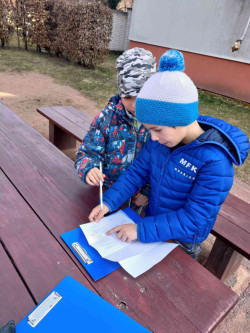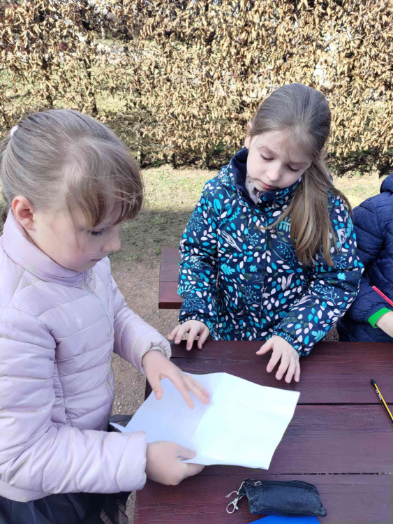 Žáci při matematice tvořili ciferník hodin a nastavovali čas podle svých kartiček.