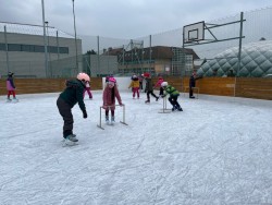 V rámci tělesné výchovy teď chodíme bruslit. Někteří stáli na bruslích úplně poprvé, ale je vidět, že se všichni každou hodinu zlepšují a bruslení si užívají! Tělocvik nás prostě baví - plaveme, bruslíme, cvičíme...