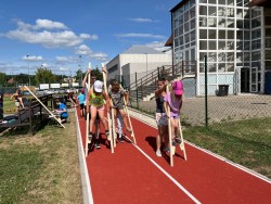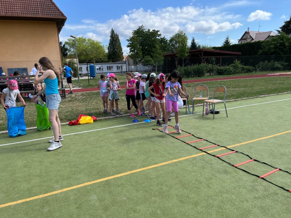 V úterý jsem si za parného počasí na závěr školního roku pěkně zasportovali. Spolužáci z devátých tříd pro nás připravili několik stanovišť. Komu se podařilo všechna splnit, získal malou odměnu. Užili jsme si pěkné dopoledne a kamarádům deváťákům DĚKUJEME za pěkně připravenou akci!!