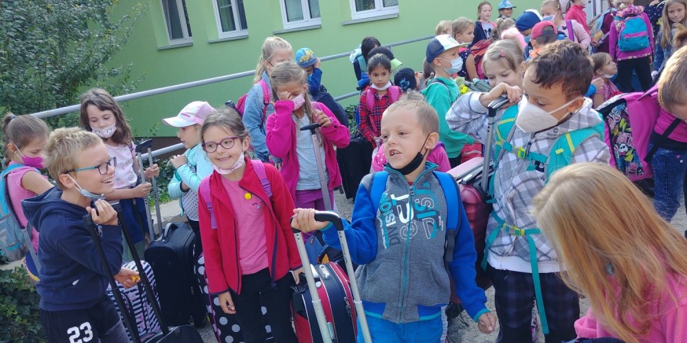 Zdravíme všechny maminky a tatínky! Po zdárném příjezdu do SVČ Ivančice jsme se ubytovali na pokojích a vyrazili ven na společný program. Počasí nám přeje, snad proto nám tak moc chutná dobré jídlo - k obědu sekaná s bramborovou kaší, na svačinku chléb s máslem či pomazánkou - někteří jich snědli až 5!, k večeři špagety. Někteří si chodili i 2x přidat! A teď před večerkou máme promítání - co jiného, než pohádku o Spongebobovi, když na toto téma celý náš adapťák je. No a potom už do postýlek, abychom byli čerství na zítřejší nabitý den :-).