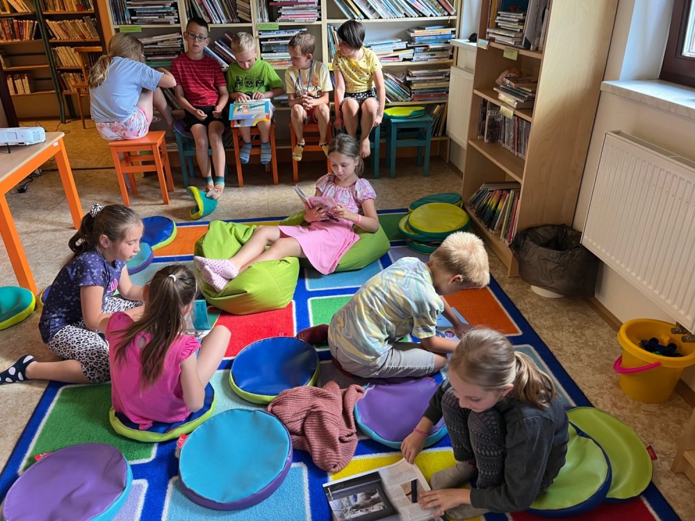 V úterý jsme se v\dali do naší modřické knihovny, kde jsme se dozvěděli něco o tvorbě Františka Hrubína a Jiřího Trnky. Paní knihovnice nám přečetla veršovanou pohádku O veliké řepě, z jiných básní jsme měli uhodnout květinu. Zhlédli jsme pohádku O myších ve staniolu a na závěr jsme si mohli půjčovat knihy. Někteří byli tak šikovní, že je stihli přečíst ve čtenářské dílně v hodině čtení ☻.