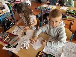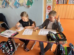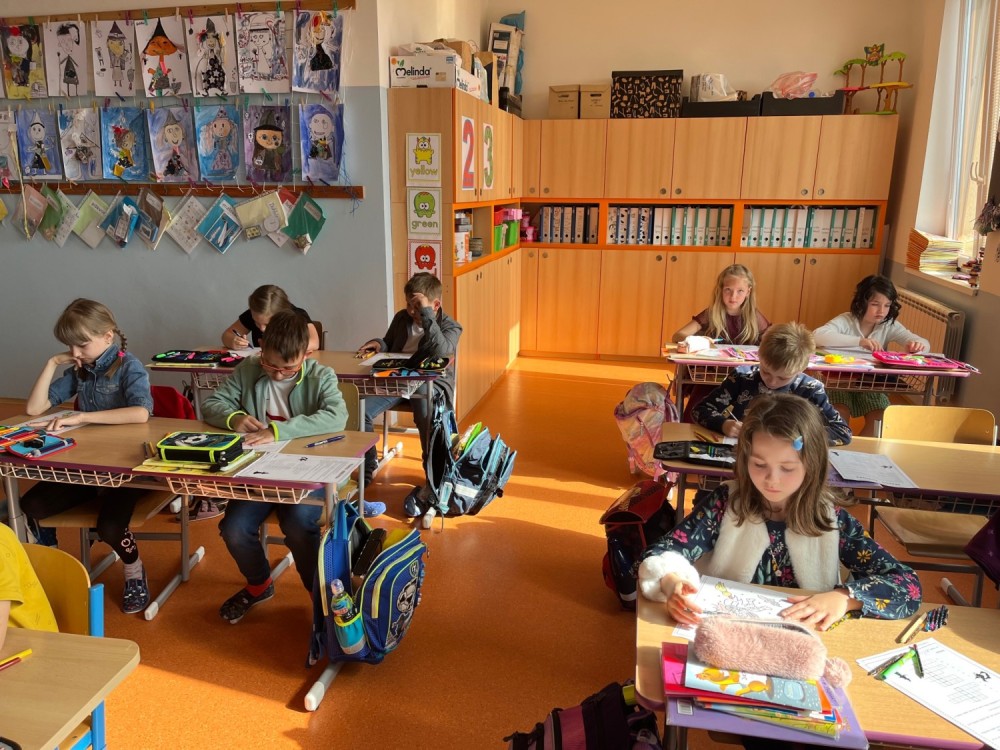 Zítra je poslední dubnový den, kdy se pálí čarodějnice. Proto jsme si dnes udělali takové čarodějnické vyučování, i když kvůli focení bez čarodějných kostýmů. Celé dopoledne jsme pracovali do pracovních listů: orientovali jsme se v textu - hledali jsme informace k pálení čarodějnic, počítali jsme barevné příklady nebo třeba luštili křížovku. V hudební výchově jsme se naučili písničku Pět ježibab, kterou si někteří i doprovodili hrou na tělo. Na závěr jsme zhlédli pohádku Chaloupka na vršku - Jak odletěly čarodějnice. Takže po dnešním dni je nám všem už jasný původ tohoto jarního lidového zvyku.